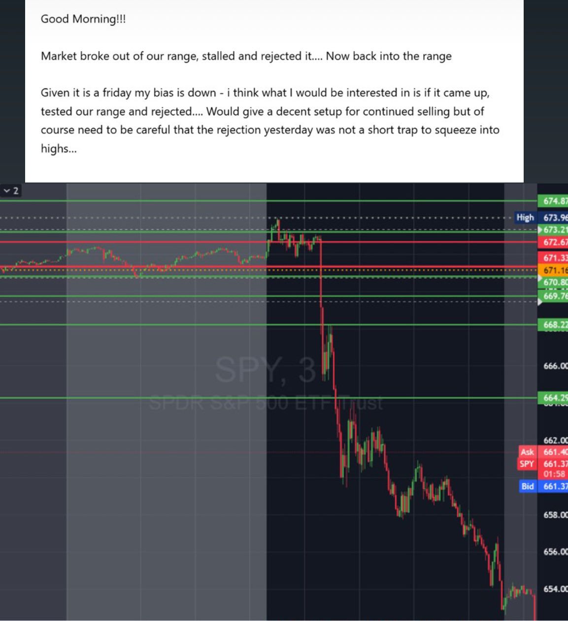 Not sure Fridays thoughts could have played out any better ! Of course execution - another story but it is the market…. When I put on my initial short position in the AM I told myself I was going to hold it till the bell. I ended up getting stopped out of that position (accidentally) - added back and I saw $$ and I took it. Nothing is wrong with that imo… See money, take money. on the flip side if I had not cut any at the levels I did and was stopped out, I would have been pretty upset… The one I do regret is I promised myself I was going to hold a scrap like 10% and I did not do that lol. Oh well didnt want that $$ anyway 🙂