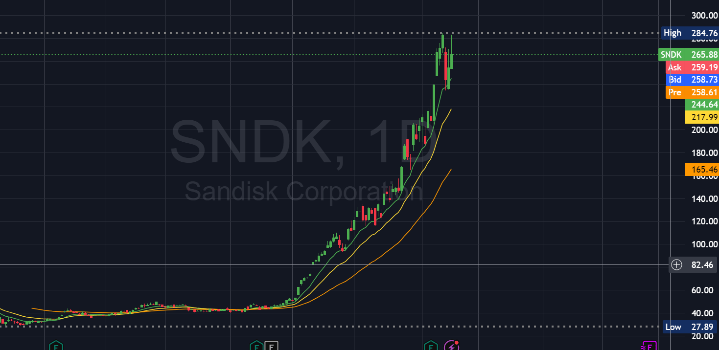 Ended up from previous close to lows almost -20%….. AHHHHHH… will definetly review this one over the weekend…. KA had a question about what I meant when I said the blow out day….. I personally think of blow out or blow off in 2 different cases… The first one in my mind is when the stock has multiple green candles - really charges ahead and has a range expansion (think like a roller coaster on the straight up trajectory…. eventually the other side comes up). The other and more my thought when discussing SNDK is the blow out of shorts…. Meaning get stopped out…
